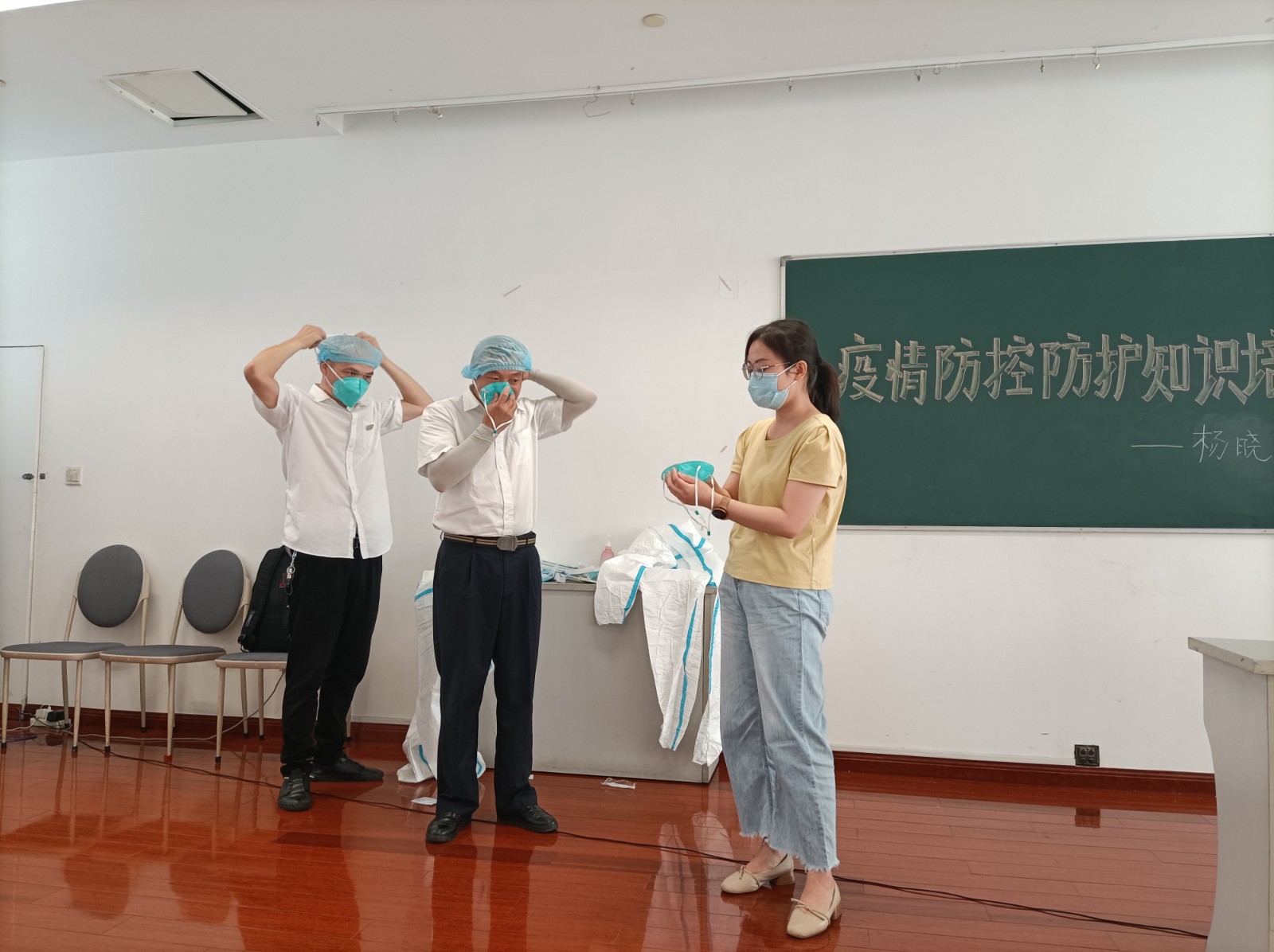 培訓(xùn)中,楊曉對如何正確有效的自身洗消進(jìn)行了專業(yè)示范,對防護(hù)服的穿、脫流程和注意事項進(jìn)行了詳細(xì)分步解說。為確保駕駛員能迅速掌握防疫知識和技能并有效運用到平時的工作中去,楊科長邀請兩名駕駛員上臺現(xiàn)場演練防護(hù)服的穿、脫步驟,同時邊指導(dǎo)邊著重指出需要注意的地方,讓大家印象更加深刻。