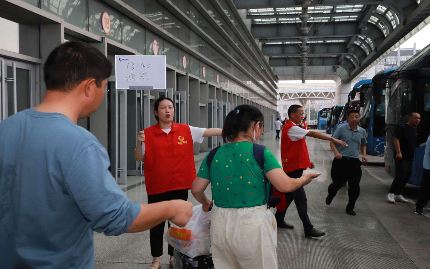 客流高峰期間,公司啟動應(yīng)急預(yù)案,在重要崗位增派人手,通過限流、分流等方式有序引導(dǎo)乘客進(jìn)站,在發(fā)車口,站務(wù)員、駕駛員、站場車輛指揮員與志愿者密切配合,分工負(fù)責(zé),有條不紊做好檢票、引導(dǎo)工作,確保旅客順利上車,踏上旅途。